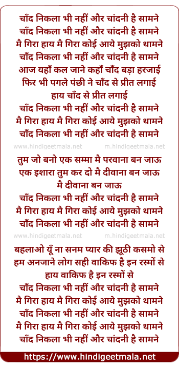 Lyrics of Chand Nikla Bhi Nahi Aur Chandni Hai Saamne - चाँद निकला भी नहीं और चांदनी है सामने
