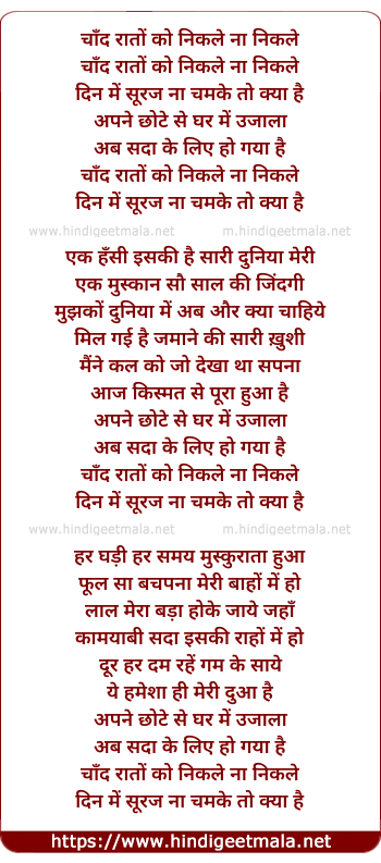 Lyrics of Chand Rato Ko Nikle Na Nikle - चाँद रातों को निकले ना निकले