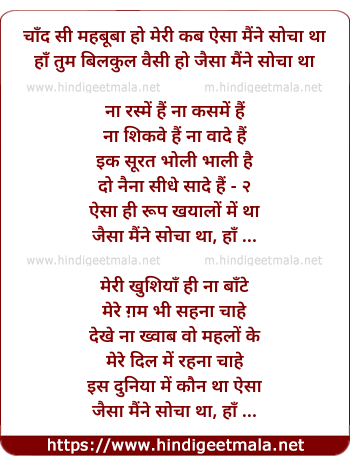 Lyrics of Chand Si Mehbooba Ho Meri - चाँद सी महबूबा हो मेरी