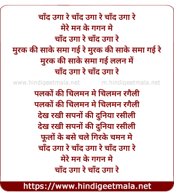Lyrics of Chand Uga Re - चाँद उगा रे
