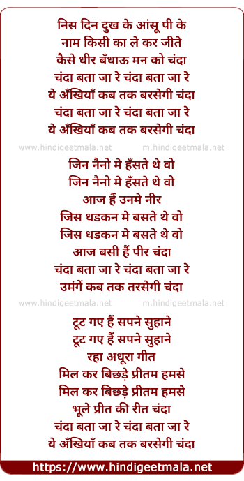 Lyrics of Chanda Bata Jaa Re - चंदा बता जा रे