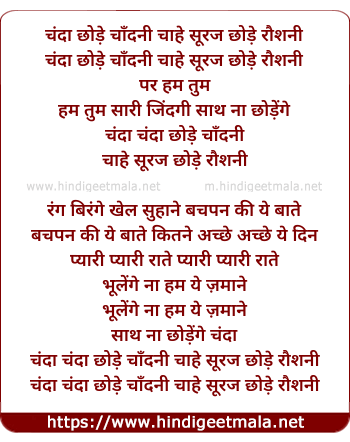Lyrics of Chanda Chode Chandani - चंदा छोड़े चाँदनी चाहे सूरज छोड़े रौशनी