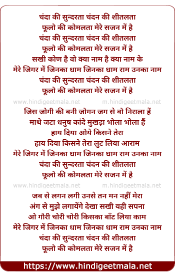Lyrics of Chanda Ki Sundarta Chandan Ki Shitalata - चंदा की सुन्दरता चंदन की शीतलता