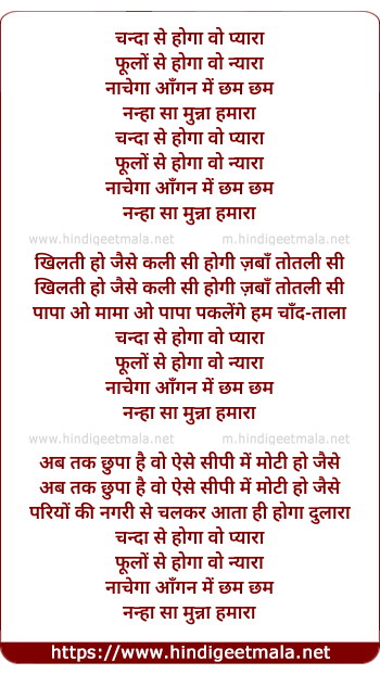 Lyrics of Chanda Se Hoga Woh Pyara - चन्दा से होगा वो प्यारा
