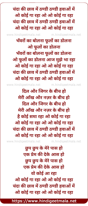 Lyrics of Chandaa Ki Chhaanv Me, O Koi Gaa Rahaa - चंदा की छाव में, ओ कोई गा रहा