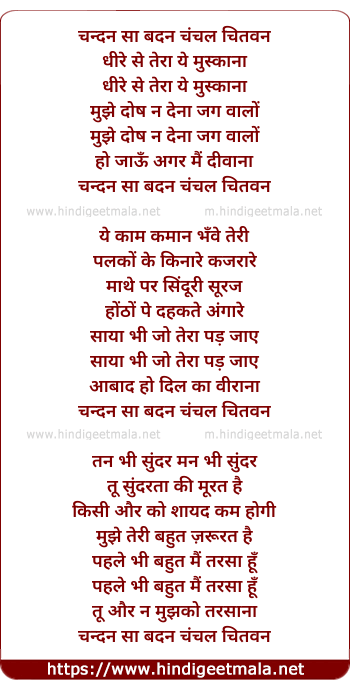 Lyrics of Chandan Sa Badan Chanchal Chitwan - By Mukesh - चन्दन सा बदन चंचल चितवन