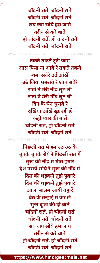 Lyrics of Chandanee Raate - चाँदनी रातें