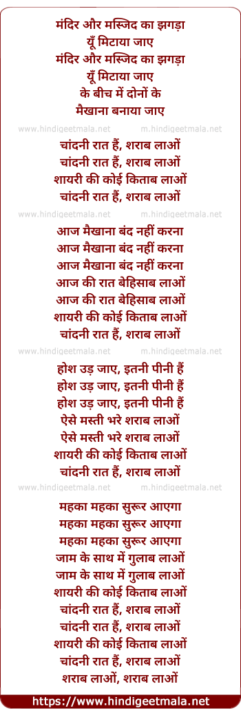 Lyrics of Chandani Raat Hai Sharab Lao - मंदिर और मस्जिद का झगड़ा