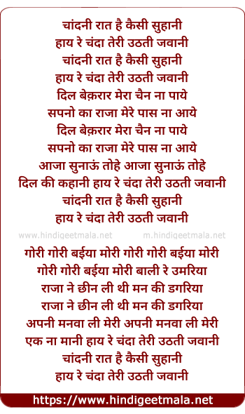 Lyrics of Chandni Raat Hai Kaisi Suhani - चांदनी रात है कैसी सुहानी