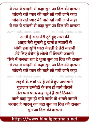 ye raat ye chandani se kaha sun ja dil ki dasta