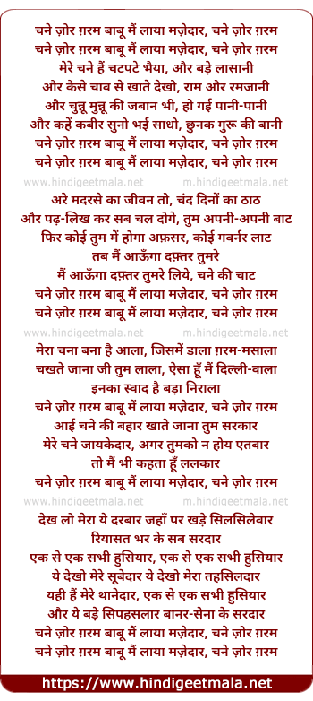 Lyrics of Chane Zor Garam Babu Main Laya Mazedar - चने ज़ोर ग़रम बाबू मैं लाया मज़ेदार