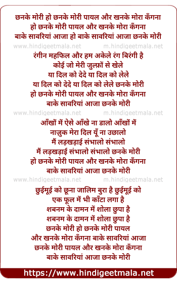 Lyrics of Chanke Mori Payal - छनके मोरी पायल