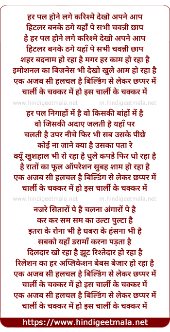 Lyrics of Charlie Kay Chakkar Mein (Duet) - हर पल होने लगे करिश्मे देखो अपने आप