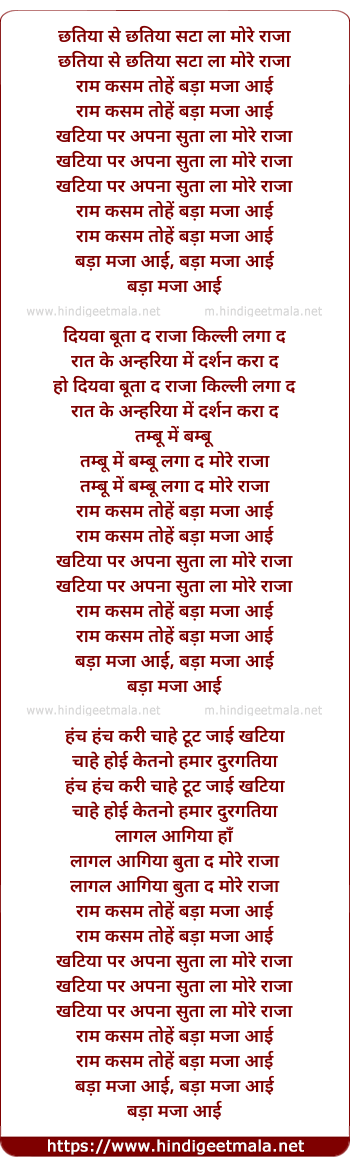Lyrics of Chatiya Se Chatiya - छतिया से छतिया सटा ला मोरे राजा