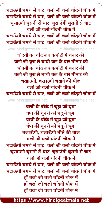 chataaungi chamche se chaat, chalo ji chalo chandani chauk me