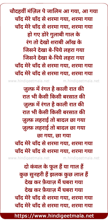 Lyrics of Chaudahavin Manzil Pe Jaalim Aa Gayaa - चौदहवीं मंज़िल पे जालिम आ गया, आ गया