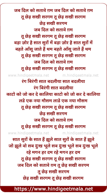 Lyrics of Chhed Sakhi Sargam - छेड़ सखी सरगम