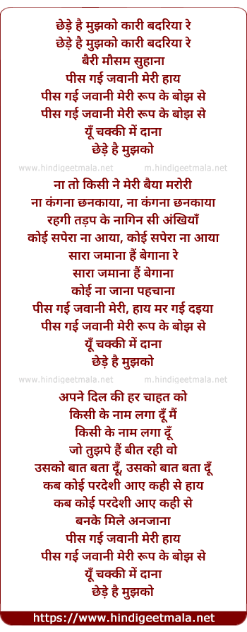 Lyrics of Chhede Hai Mujhko Kaari - छेड़े है मुझको कारी