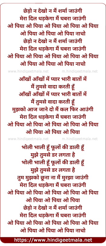 Lyrics of Chedo Na Dekho Na Mai Sharma Jaungi - छेड़ो ना देखो ना मैं शर्मा जाऊँगी