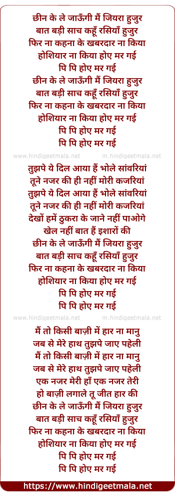 Lyrics of Cheen Ke Le Jaoongi Main - छीन के ले जाऊँगी मैं