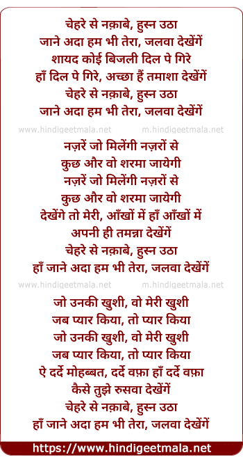 Lyrics of Chehere Se Naqabe, Husn Uthaa - चेहरे से नक़ाबे, हुस्न उठा