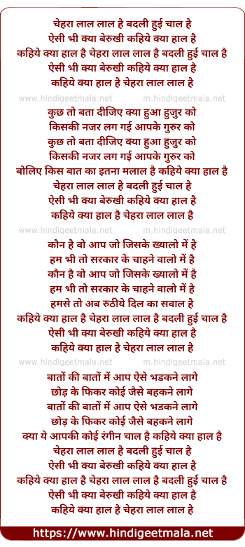 Chehra Lal Lal Hai Badli Hui Chal Hai - चेहरा लाल लाल है बदली हुई चाल है