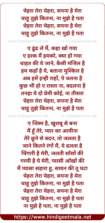 Lyrics of Chehra Tera Chehra - चेहरा तेरा चेहरा