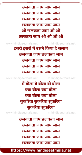 Lyrics of Chhalakta Jaam Jaam Jaam - छलकता जाम जाम जाम