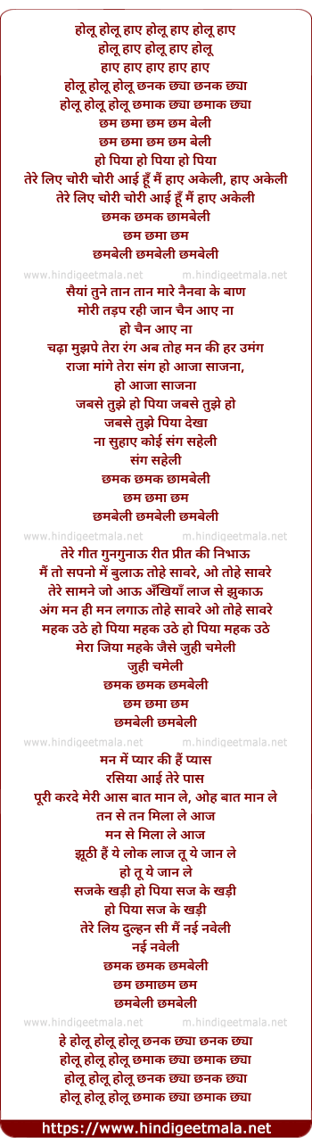 Lyrics of Chham Chhama Chham Chambeli - छम छमा छम छमबेली