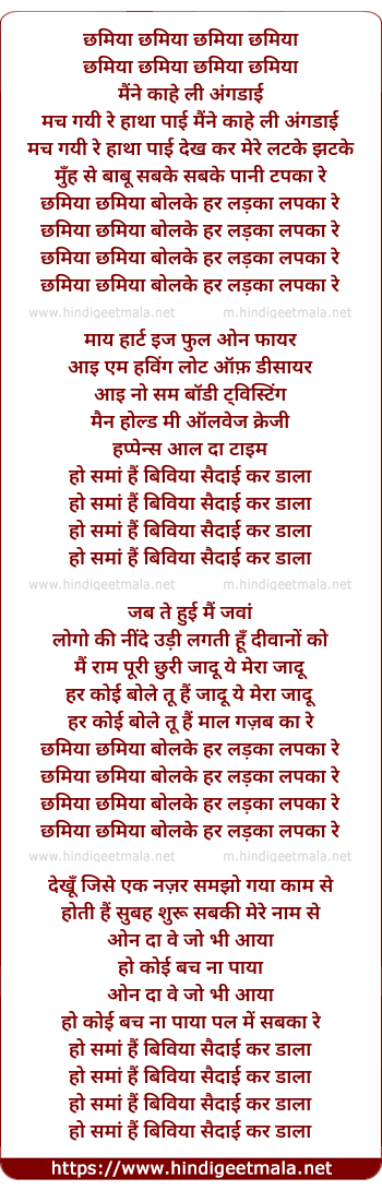 Lyrics of Chhamiya Chhamiya - छमिया छमिया