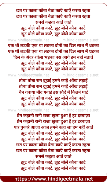 Lyrics of Chhat Par Kala Kauva Baitha - छत पर काला कौवा बैठा