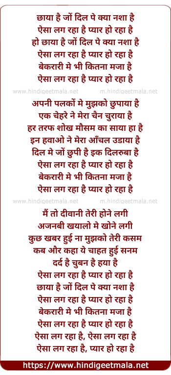 Lyrics of Aisa Lag Raha Hai Pyar Ho - ऐसा लग रहा है प्यार हो