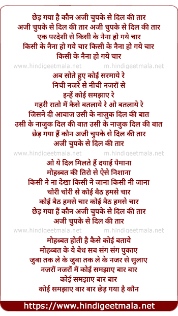 Lyrics of Chhed Gaya Hai Kaun Aji Chupke Se Dil Ki Taar - छेड़ गया है कौन अजी चुपके से दिल की तार