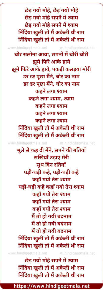 Lyrics of Chhed Gayo Mohe Sapne Me Shyam - छेड़ गयो मोहे सपने में श्याम