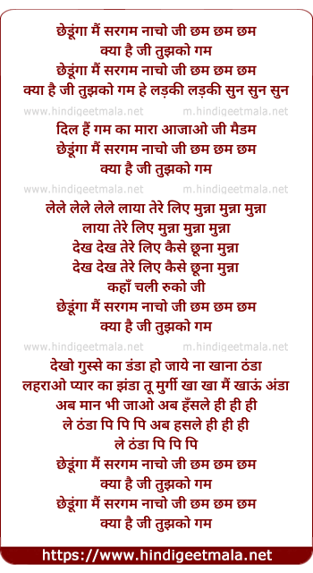 Lyrics of Chhedunga Mai Sargam Nacho Ji - छेडूंगा मैं सरगम नाचो जी