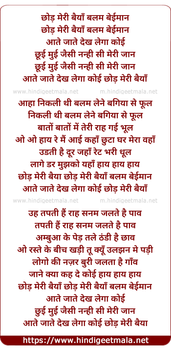 Lyrics of Chhod Meri Baiyya Balam - छोड़ मेरी बैयाँ बलम