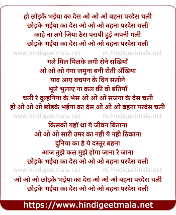 ho chhod ke bhaiya ka des o o o behna pardes chali