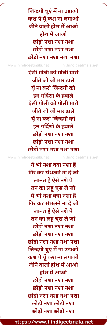 Lyrics of Chhodo Nasha - छोड़ो नशा