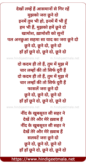 Lyrics of Chhoone Do - देखों लम्हें हैं आसमानों से गिर रहें