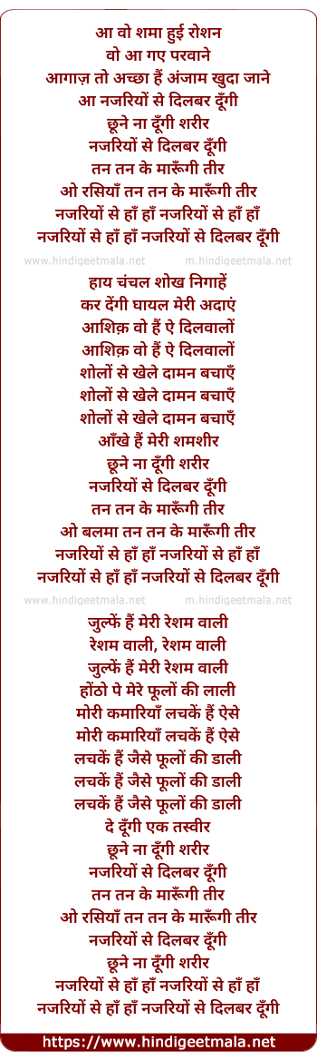 Lyrics of Chhoone Na Doongi Sharir - आ वो शमा हुई रोशन
