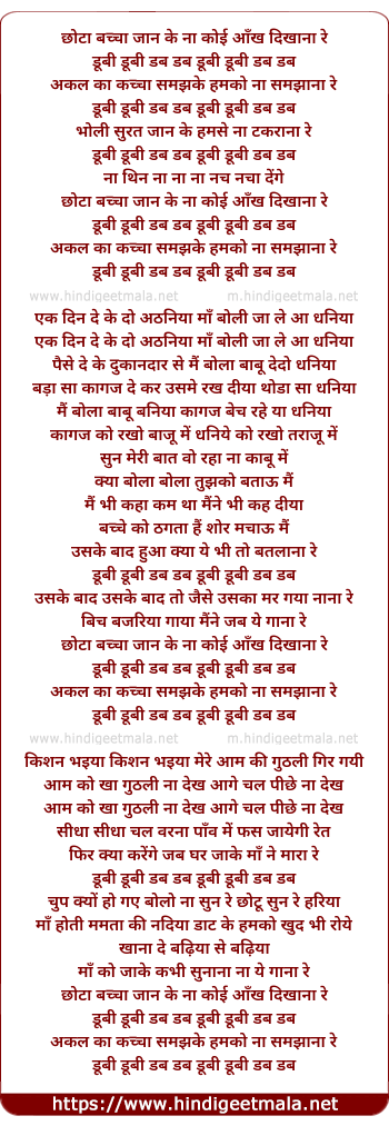 Lyrics of Chhota Bacha Jaan Ke Humko Na Samjhana Re - छोटा बच्चा जान के हमको ना समझाना रे