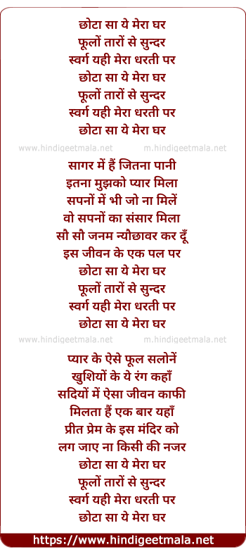 Lyrics of Chhota Sa Yeh Mera Ghar (Female) - छोटा सा ये मेरा घर