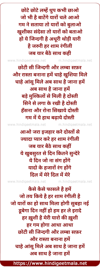 Lyrics of Chhotee See Jindagee Aur Lamba Safar - छोटी सी जिन्दगी और लम्बा सफ़र