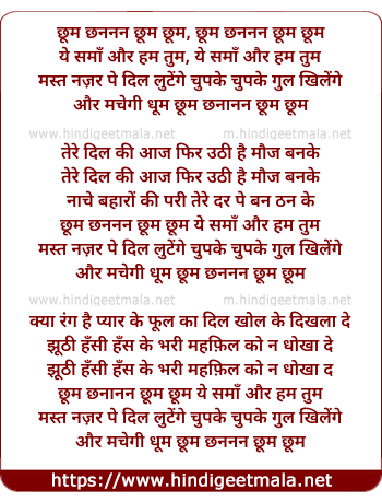 Lyrics of Chhum Chhanaanan Chhum Chhum Ye Samaan Aur Ham Tum - छूम छननन छूम छूम ये समाँ और हम तुम