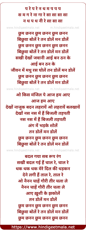 Poetic Translation - Lyrics of Chhum Chhanana - छुम छनन