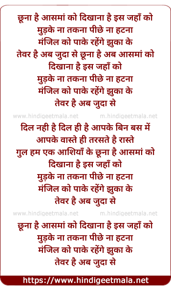 Lyrics of Chhuna Hai Aasman Ko - छूना है आसमां को