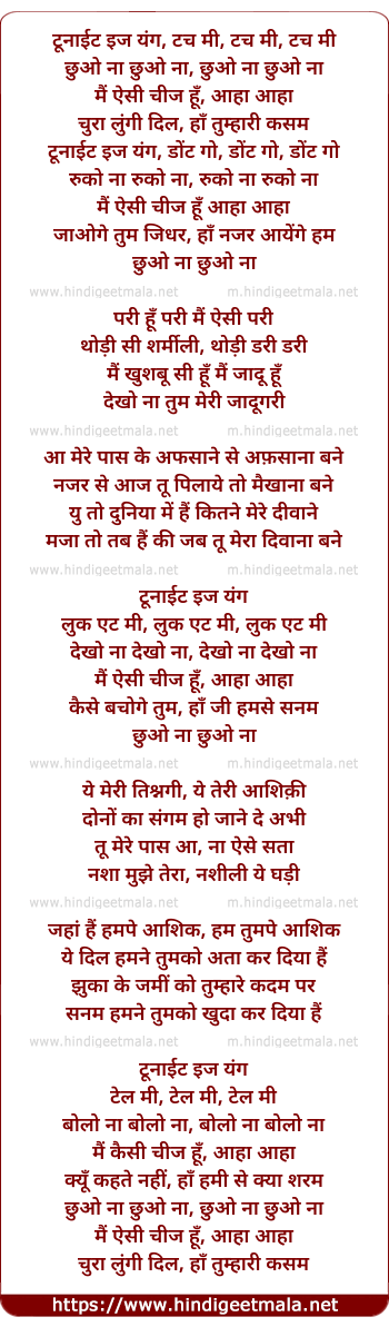 Lyrics of Chhuo Naa Chhuo Naa - छुओ ना छुओ ना