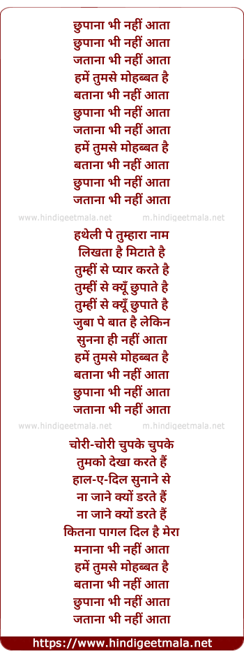 Lyrics of Chhupana Bhi Nahi Aata (2) - छुपाना भी नहीं आता