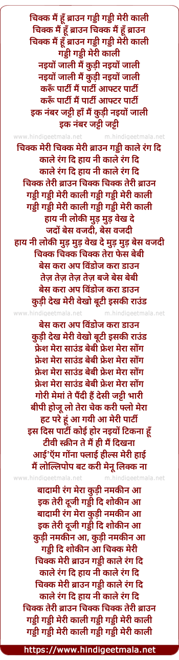 Lyrics of Chick Main Hoon Brown - चिक्क मैं हूँ ब्राउन