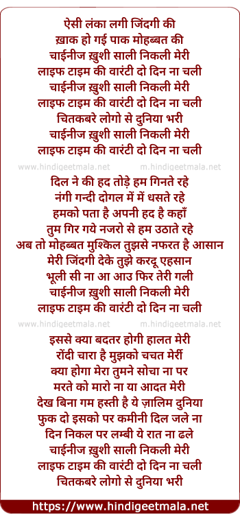 Lyrics of Chinese Khushi Sari Nikali Meri - चाईनीज ख़ुशी सारी निकली मेरी